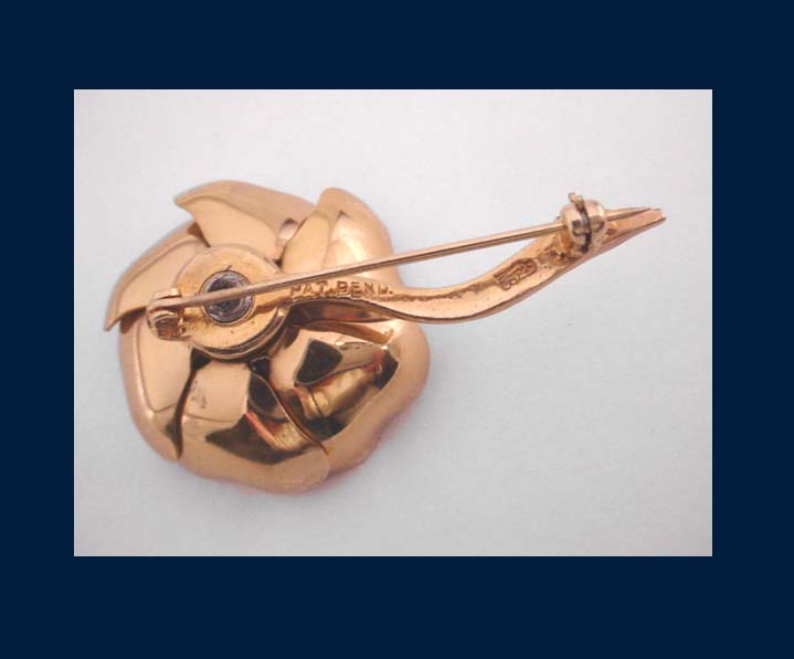 A fun gold tone flower pin with opening and