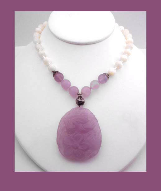 Carved Lavender Pendant & Beaded