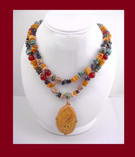Colored Beads & Carved Pendant Contemporary